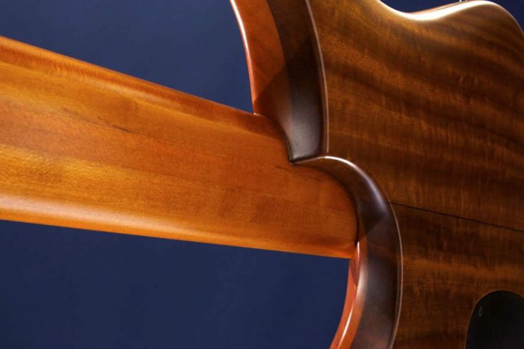 Dieser Bereich ist jetzt stabiler und das eröffnet uns neue Möglichkeiten in Sachen Bodyshaping. Auf Grund der gewonnenen Stabilität im Bereich der Halspassung kann die Korpusrückseite dünner ausgearbeitet werden. Das verbessert die Ergonomie, und das Instrument saugt sich noch besser an den Bassisten.